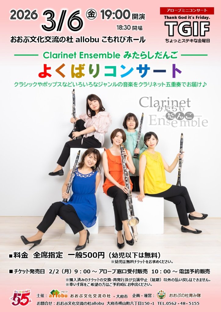 アローブミニコンサートTGIF「Clarinet Ensemble みたらしだんご よくばりコンサート」