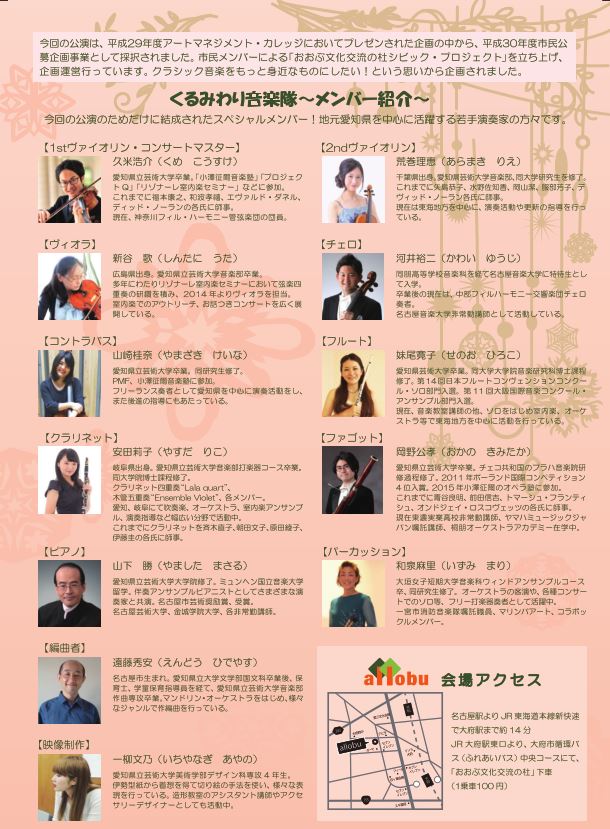 このコンサートは平成29年度アートマネジメント・カレッジにおいてプレゼンされた企画の中から採択された、